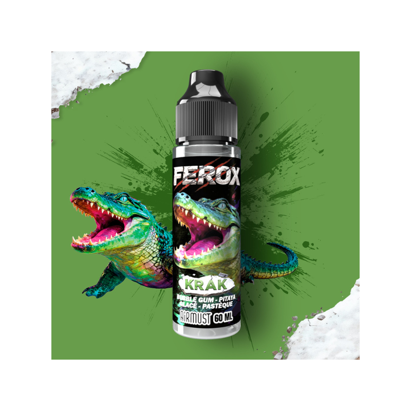 Avec Krak Ferox 60ml, la gamme Ferox de Airmust pousse l’audace aromatique à son paroxysme. Fidèle à l’ADN FEROX – la vape indomptable, Krak claque des mâchoires dans une recette aussi sauvage qu’originale.